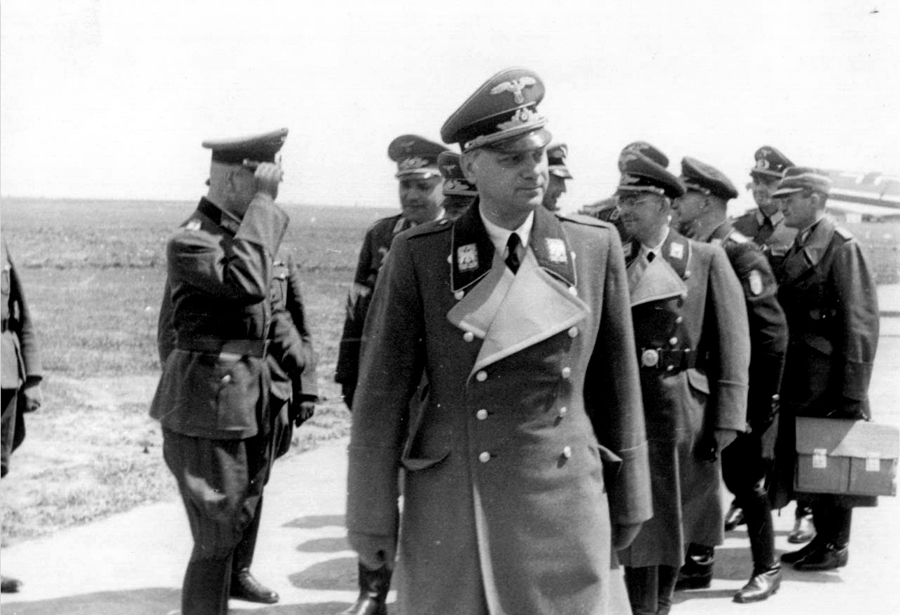Далее защитник интересуется деятельностью так называемого штаба Розенберга. Как известно, этот «штаб» осуществлял в огромных масштабах ограбление подвергавшихся германской оккупации стран Европы и, в частности, особенно «интересовался» произведениями искусства, присваивая их и отправляя в Германию. Если послушать показания подсудимого, то получается, что он якобы не только не давал приказов о конфискации и отправке произведений искусства в Германию, а, наоборот, принимал все меры к их охране.