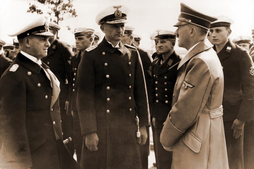 Будучи с 30 января 1943 года главнокомандующим военно-морскими силами Германии, Дениц объявляет себя лишь «первым солдатом военно-морских сил» и всячески отрицает своё участие в политической деятельности гитлеровской Германии. Однако Дениц признаёт, что он положительно относился к «идеям» гитлеризма и восхищался Гитлером.