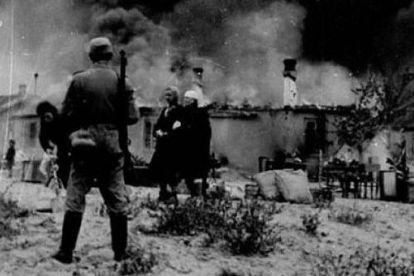 «...Рота с приданным ей взводом получила задание расстрелять жителей населенных пунктов, а все постройки сжечь... Всего расстреляно 128 чел., из них 28 мужчин, 40 женщин и 60 детей. Сожжен 21 крестьянский двор...